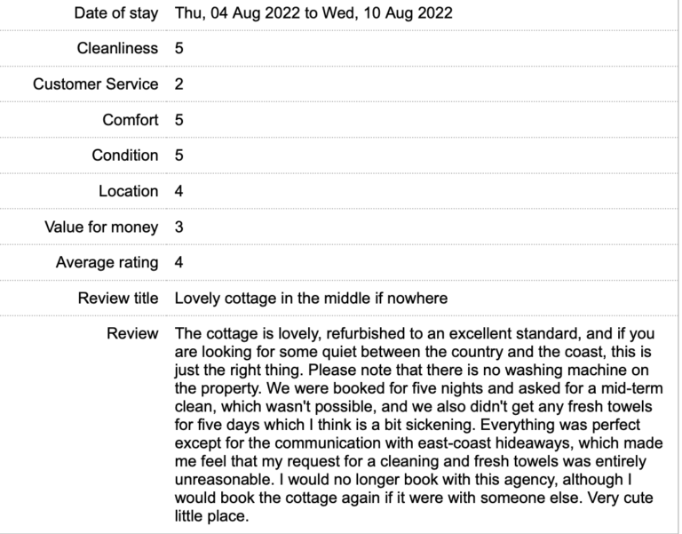 In the 18 months we’ve been operating as a company, we’ve had three unhappy reviews out of over 100 happy reviews, so we think that’s a win. One was legit, one was removed when challenged, and the other was a case of us dropping the ball, we’re only human and we fully admit that.