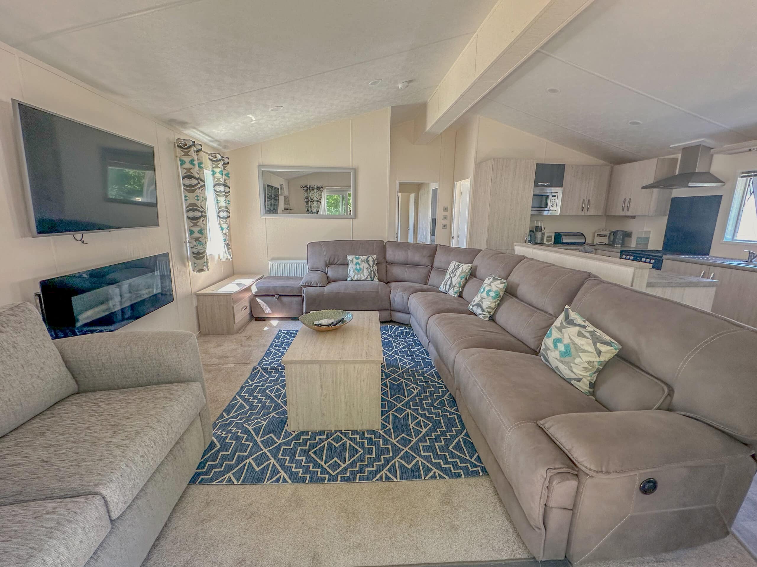 Lakeside Lodge is a beautiful holiday home that sleeps 6 people and offers stunning views over the lake. Carlton Meres Holiday Park, where it’s located, is the perfect destination for your family holiday, featuring well-stocked fishing lakes, a serene setting, and a wide range of leisure facilities. The park features an outdoor pool, a fully-equipped gym, an indoor pool, an upgraded adventure playground, and a newly renovated clubhouse with a restaurant, bar, gaming, and relaxation areas.