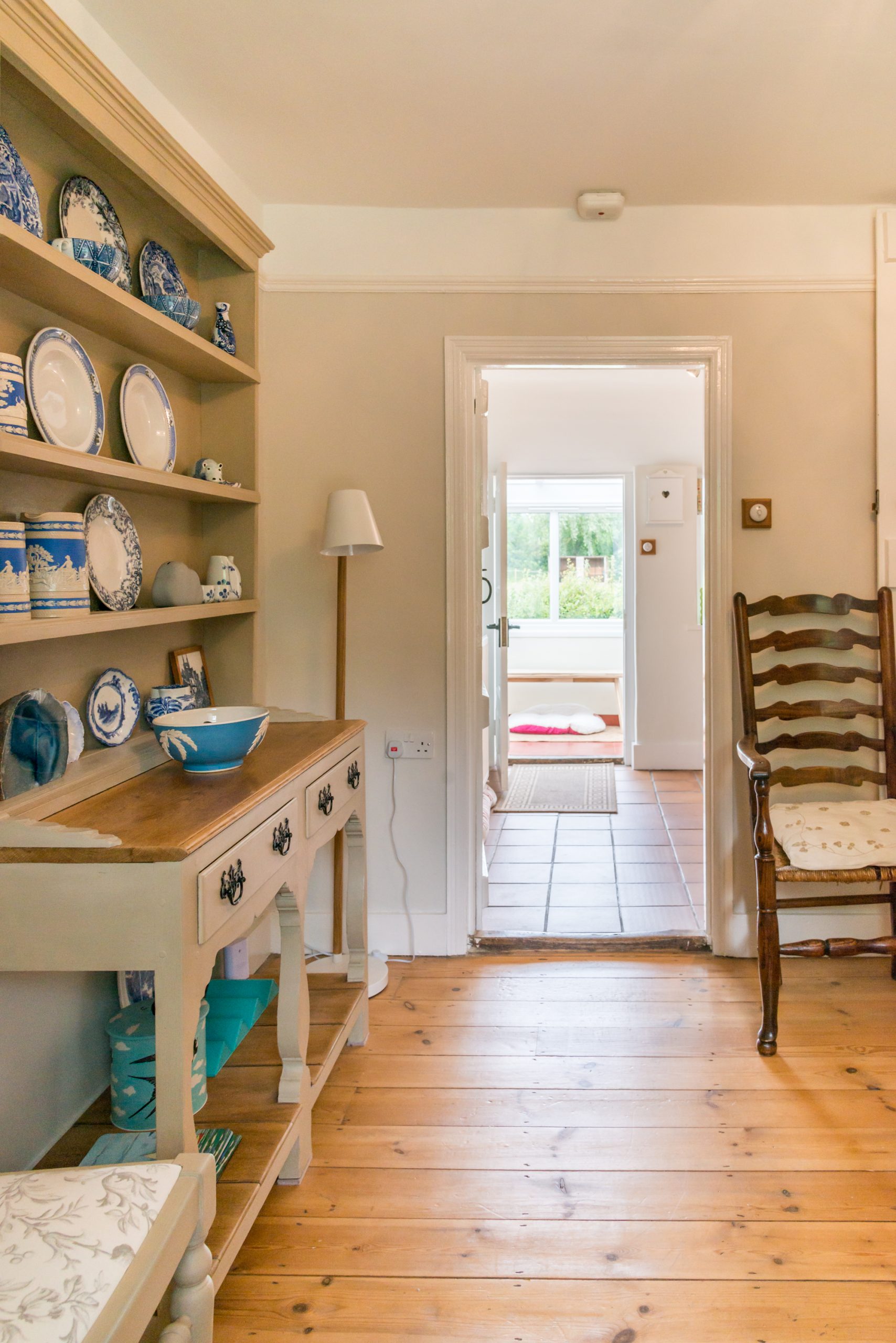 Enter the cottage to the vestibule. This is the perfect room to pop your outdoor clothes and shoes and also contains a handy wall rack for all your dogs accoutrements! There is also a storage unit with doggie supplies- bowls, towels, shampoo, poo bags, toys etc and gives you wonderful views across the fields, towards the local stables.