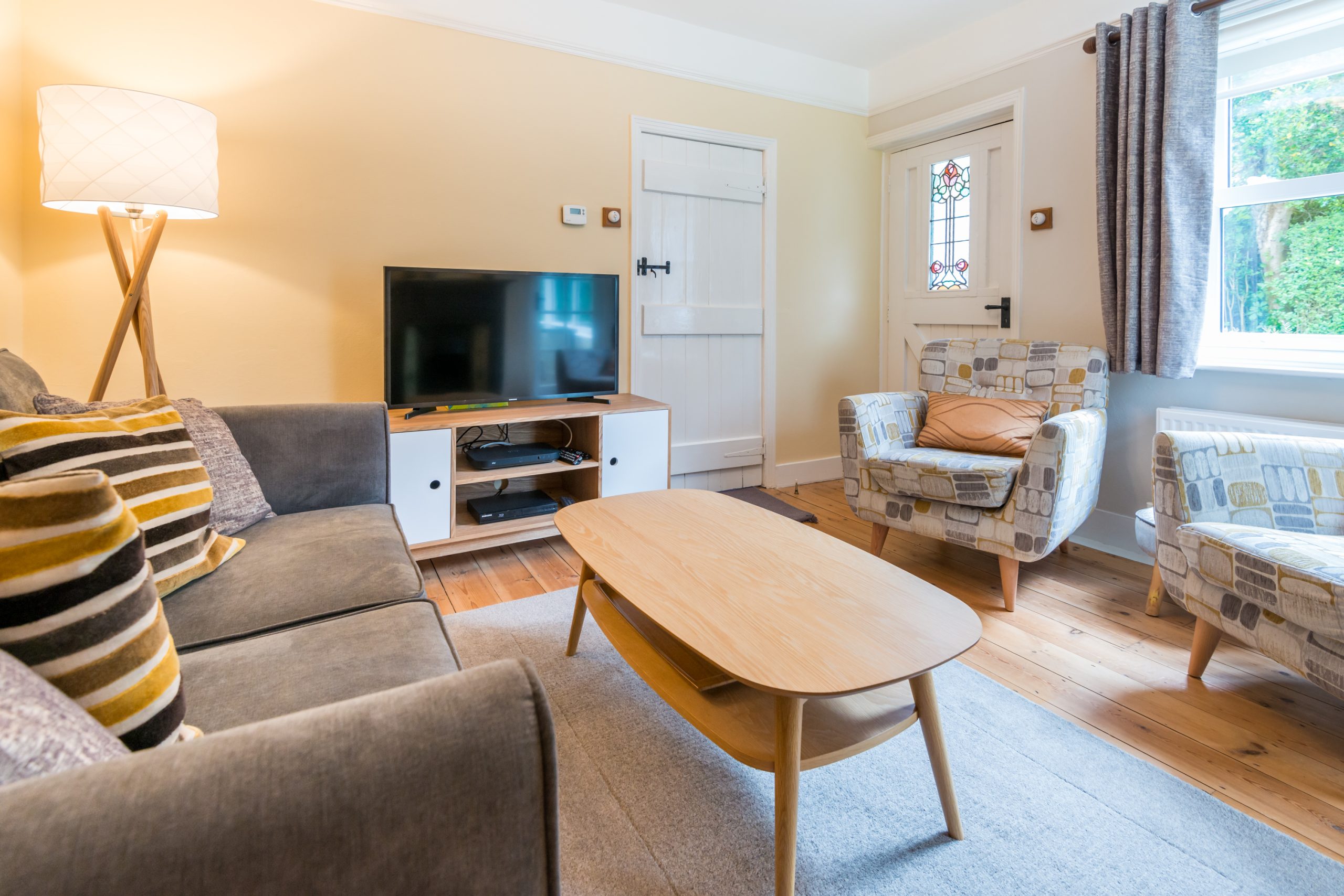 Living Room – A fabulous room to relax in with plenty of seating, original internal doors (which are throughout the cottage), feature ornamental open fire and beautiful lamps. A 40 inch screen Smart TV, which has a Bluray DVD and also Sky TV.