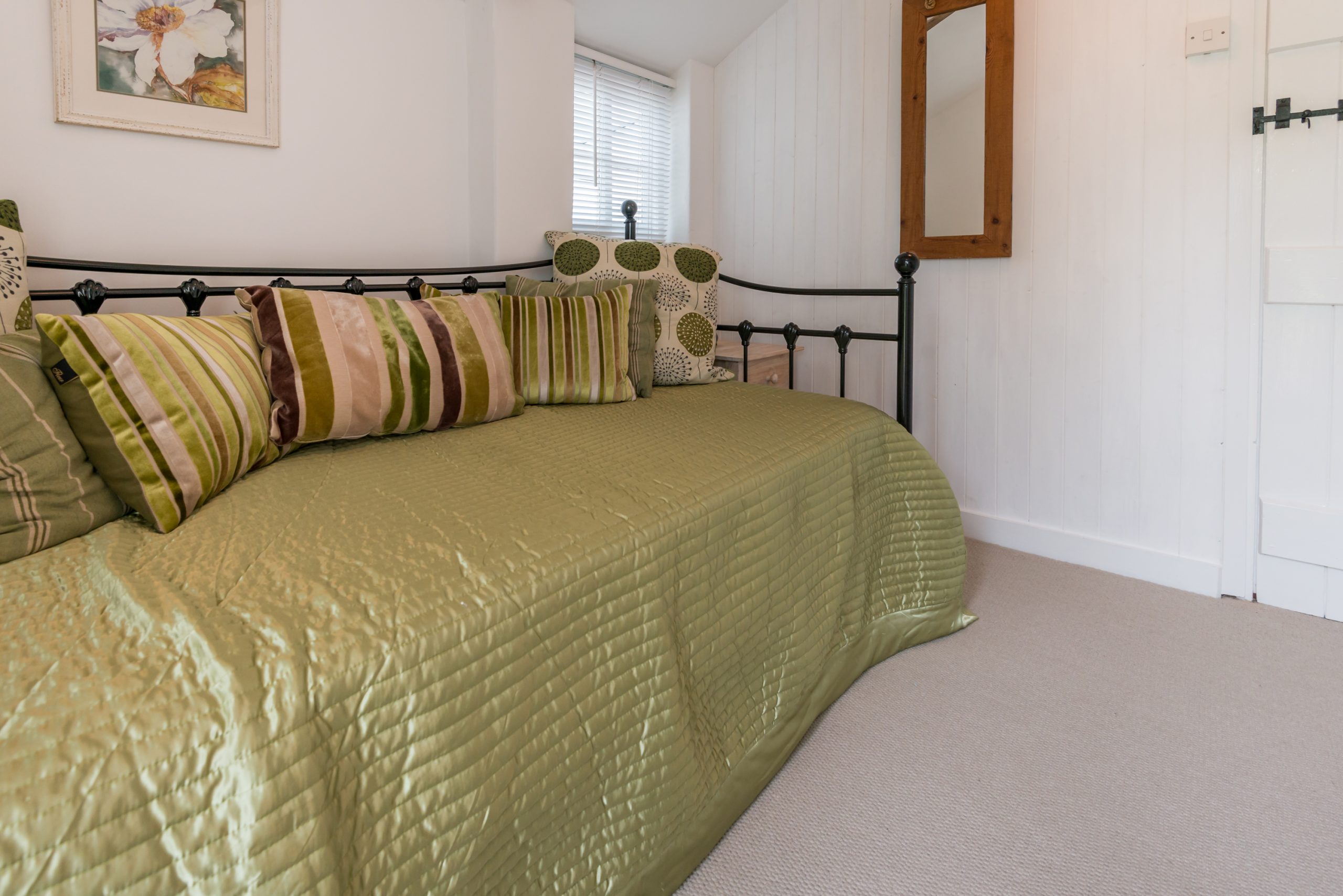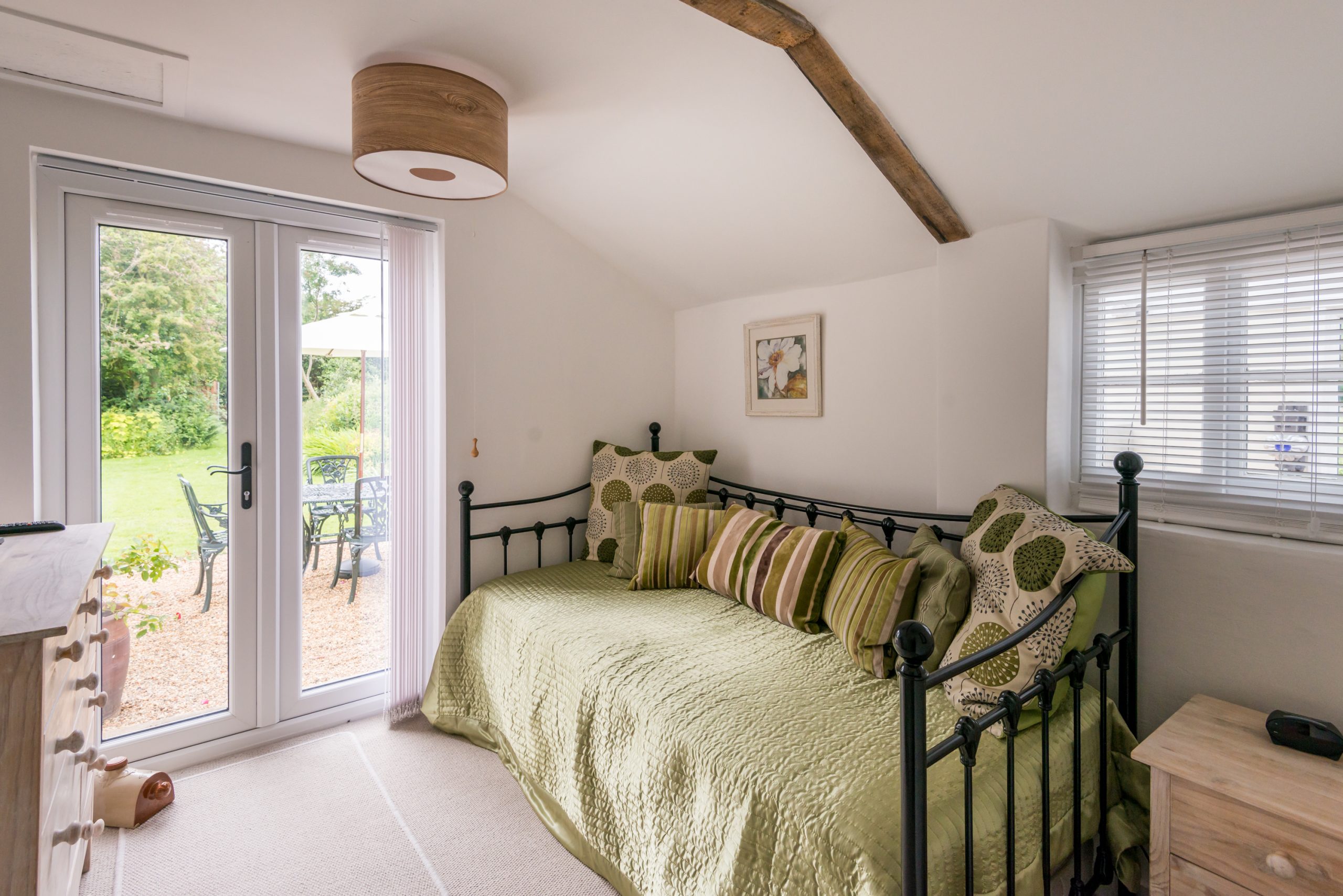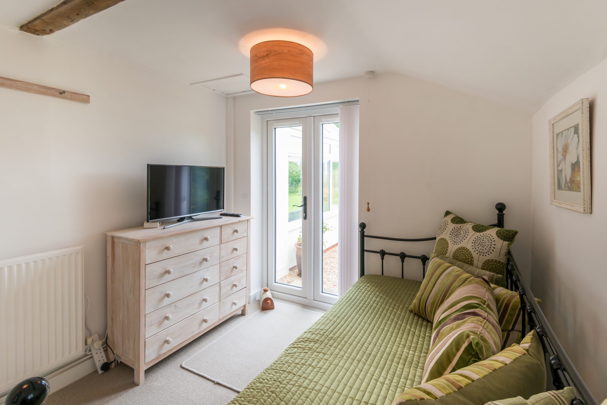 Snug / Downstairs Bedroom – Come back through the kitchen and take the first door on your right to the snug. This room has patio doors which open out into the secure back garden and has a lovely area with seating outside – just perfect for that morning coffee and soaking up the rays! This room is furnished with a lovely single bed