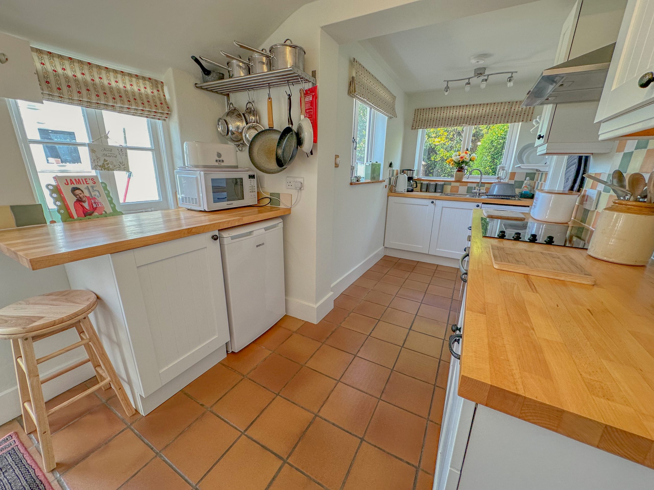 Our lovely owners have taken great care to ensure that your holiday is carried out in style and comfort. For the chefs among us, there is no excuse not to cook up a storm with the wonderful copper based hanging pans in easy reach. There are lovely views from double aspect windows, and you can enjoy this at the table for two.