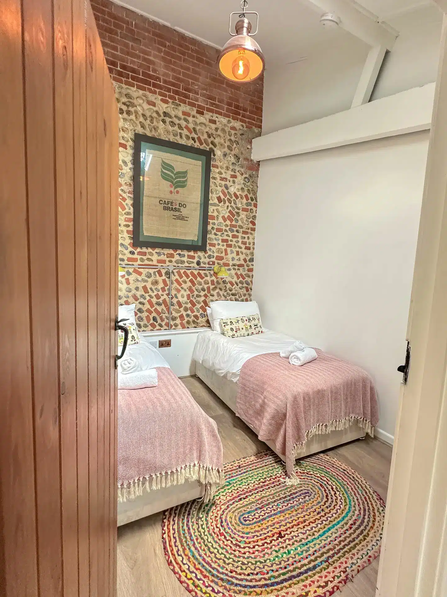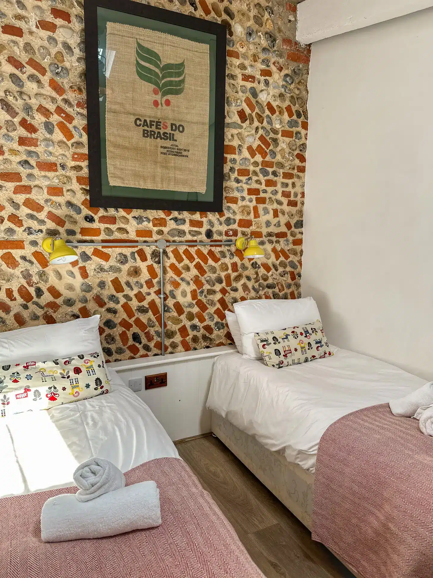 Twin bedroom with two full-size single beds, which can also be made into a super king on request.