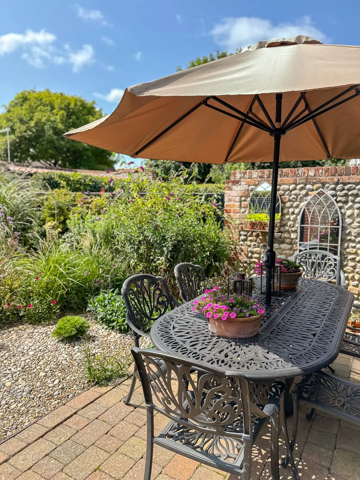 Step out into the peaceful private sun-trap garden – a lovely space to soak up the tranquillity, listen to the birds, or enjoy a glass of wine in the evening.