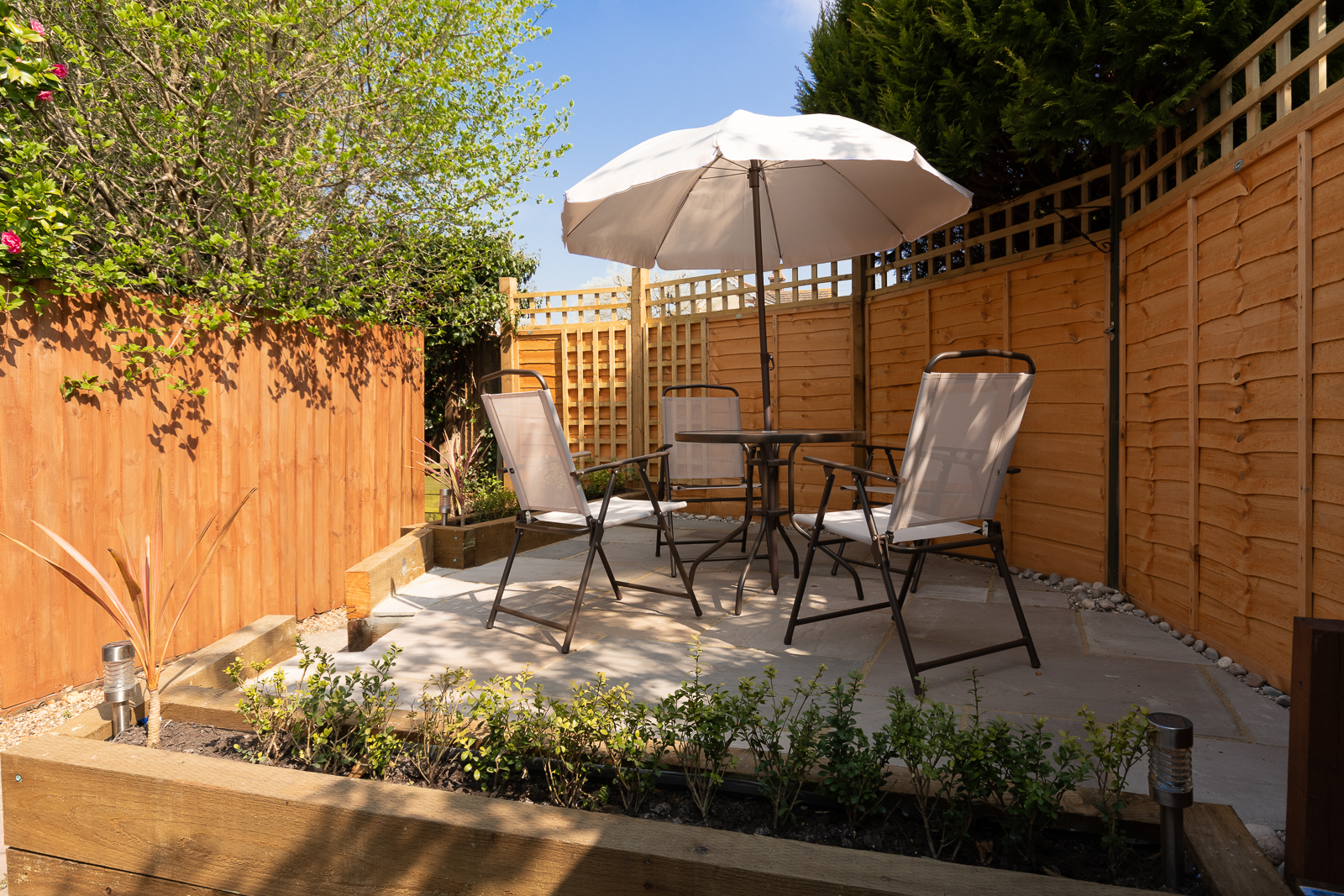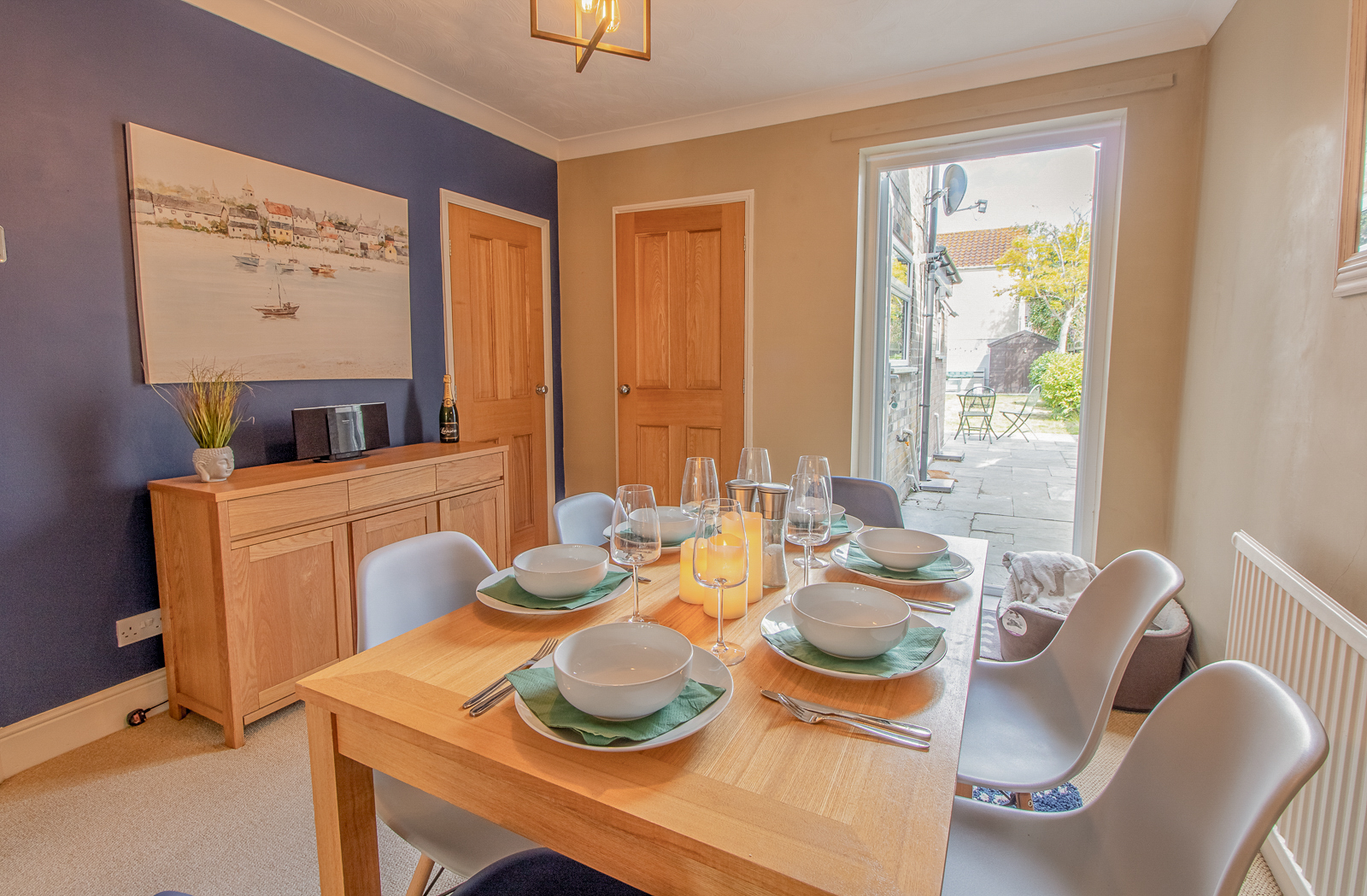 Want to explore the Suffolk coastline this summer? This is the perfect coastal base to do just that! It’s sandwiched between popular seaside resorts – Thorpeness, Aldeburgh and Leiston. It’s in a rural setting with walks from the front door – which is ideal if you are bringing your furry best friend along. There is also a village pub and convenience store just 2 mins walk away. Outside you will find a new patio deck with outdoor furniture in a fully enclosed garden offering security and privacy for kids and dogs. There is also ambient lighting, railway sleepers, and shrubs, which all add to the pleasantness of the little sun trap retreat.
