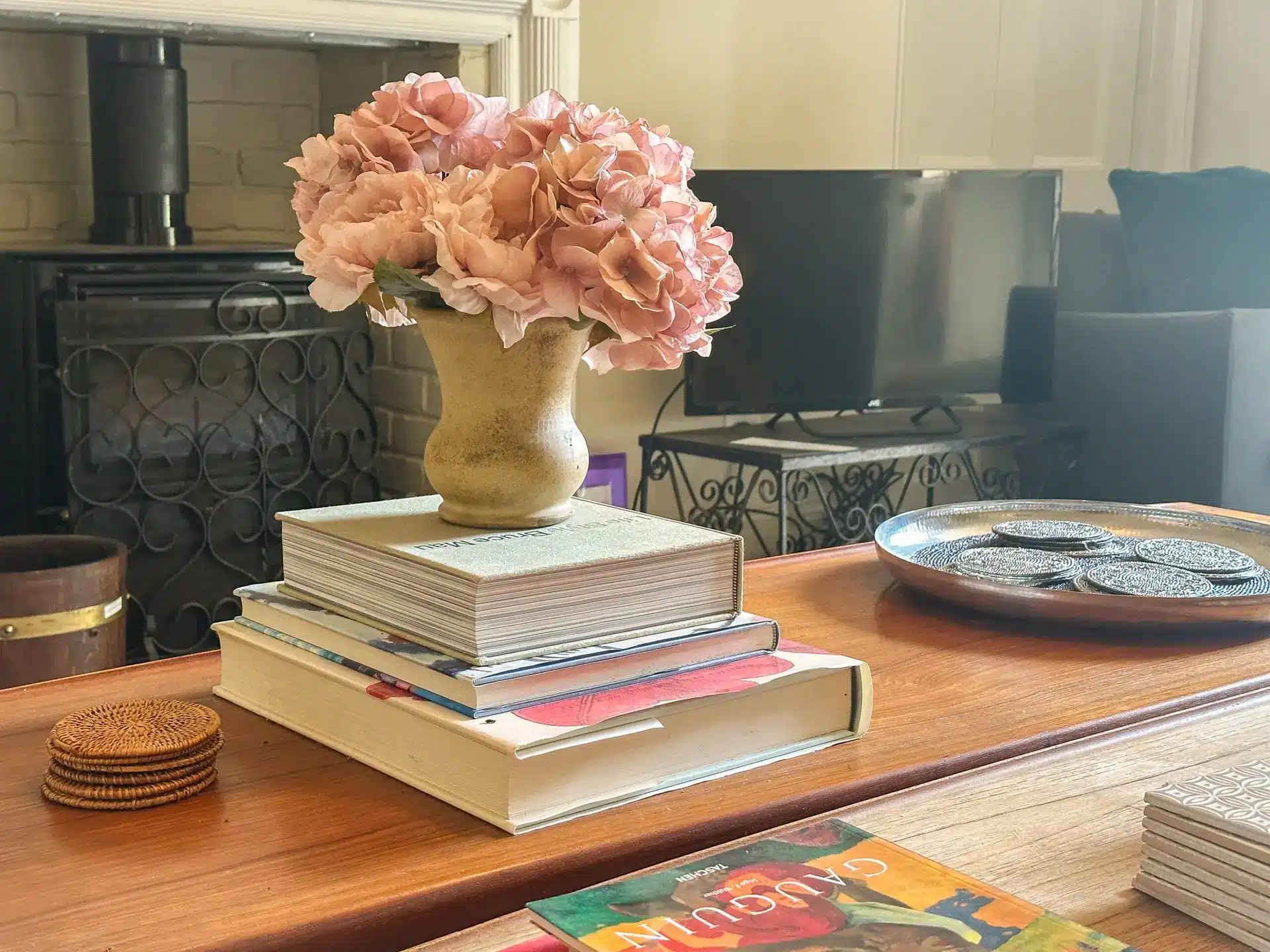 Cozy lounge complete with a wood-burning stove and Smart TV — perfect for quiet evenings in