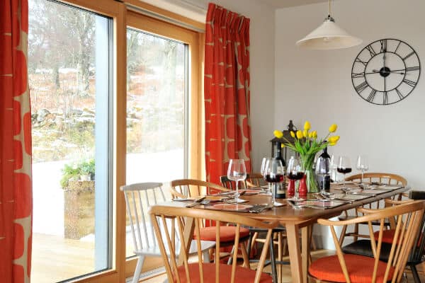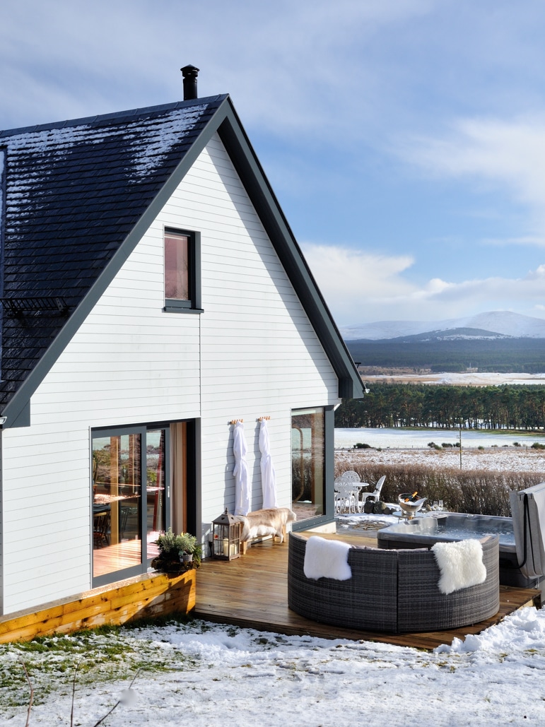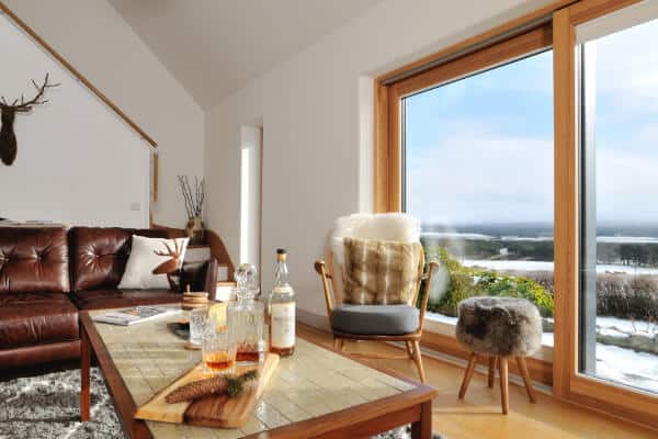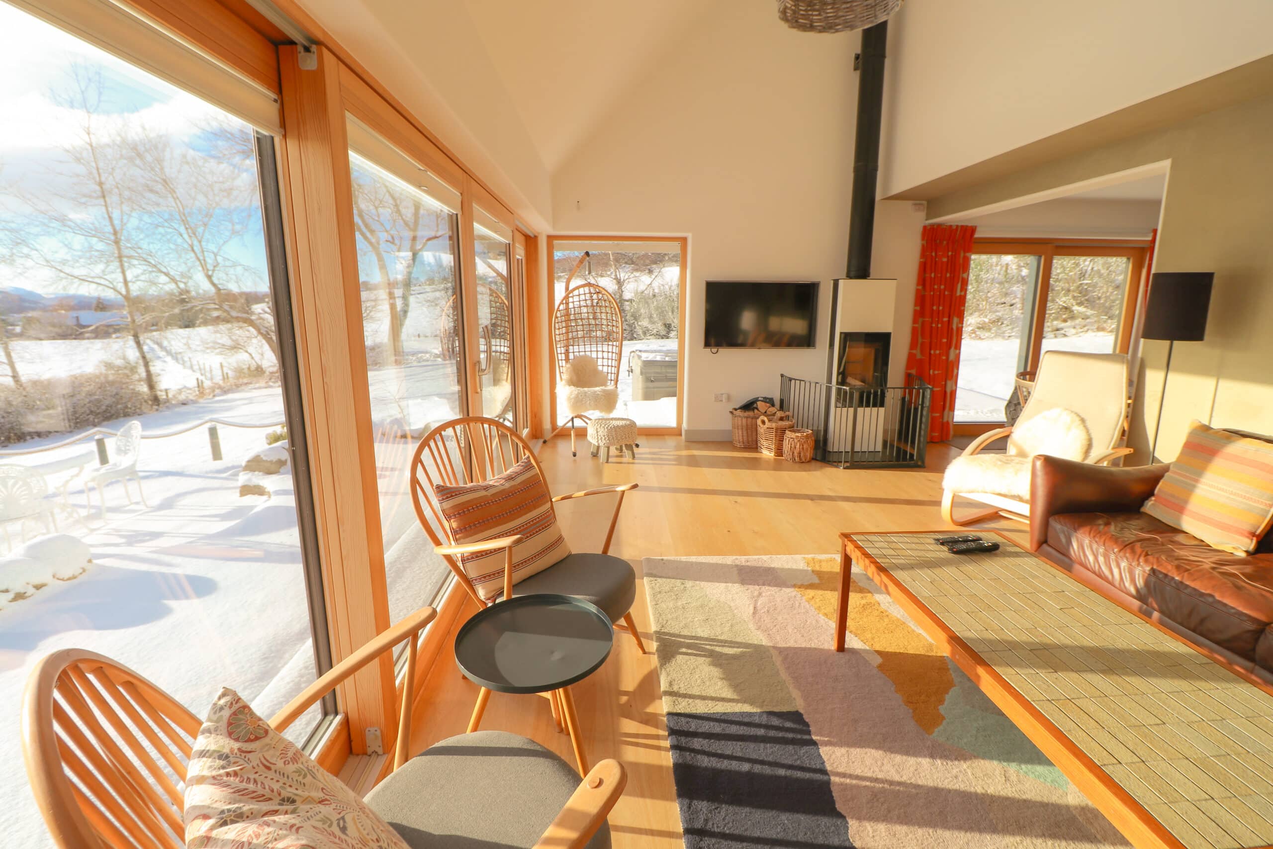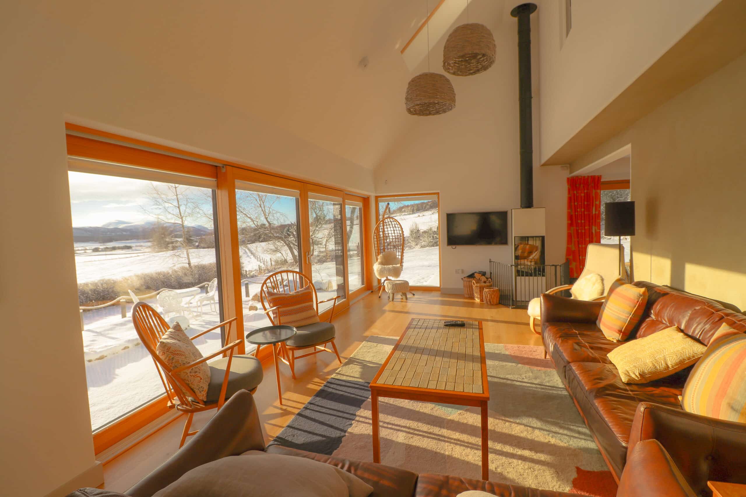 Boasting some of the finest views of the Cairngorm mountain range, the Lodge is nestled on the edge of a forest between the Boat of Garten and Carrbridge. Finished to an exceptionally high standard, which includes Scandinavian-designed furniture and a quality stocked kitchen with top-of-the-range appliances, Tom’s Lodge has everything you need for a comfortable stay.