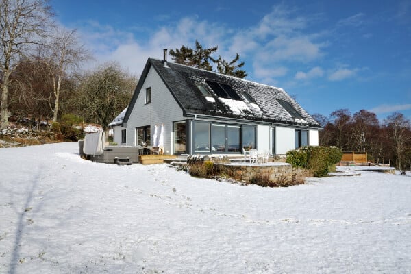 Boasting some of the finest views of the Cairngorm mountain range, this gorgeous Eco lodge is nestled on the edge of a forest between Boat of Garten and Carrbridge. Finished to an exceptionally high standard, which includes Scandinavian-designed furniture and a quality stocked kitchen with top-of-the-range appliances, Tom’s Lodge has everything you need for a comfortable stay.
