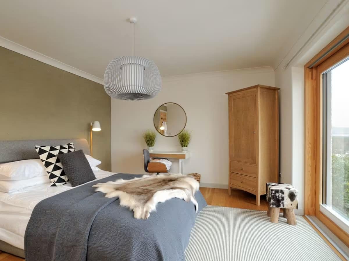 Bedroom 1: With kingsize bed, Smart TV and wooden floor.