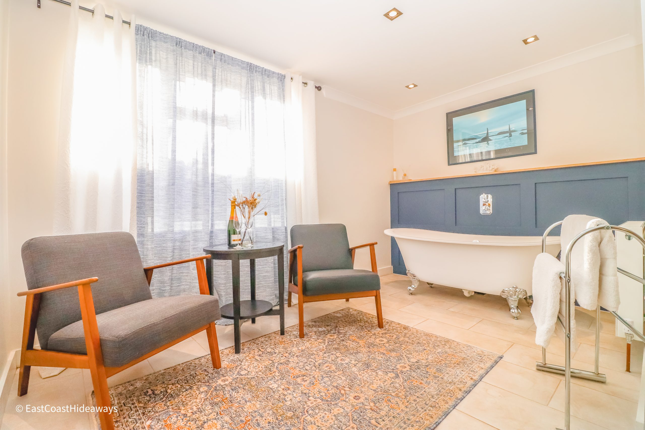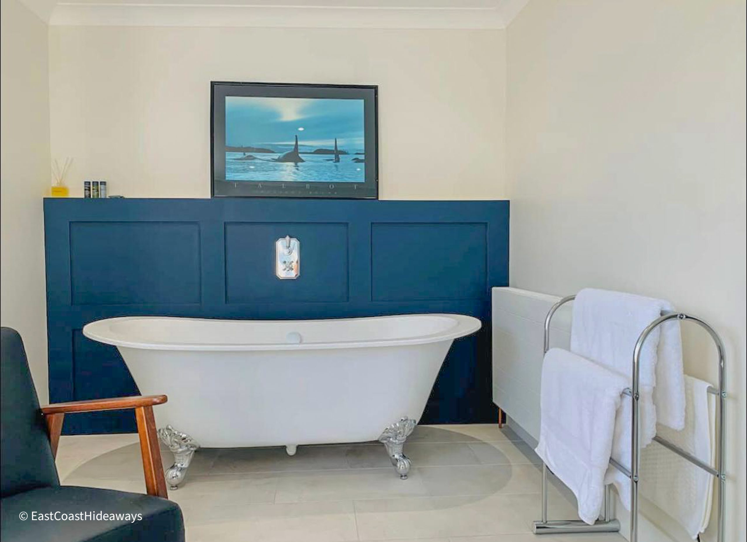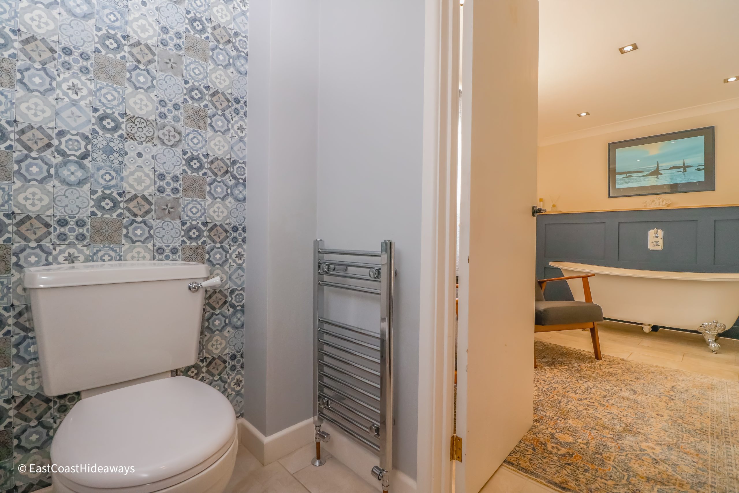 The bathrooms feature a roll-top bath, powerful showers and plenty of hot water.