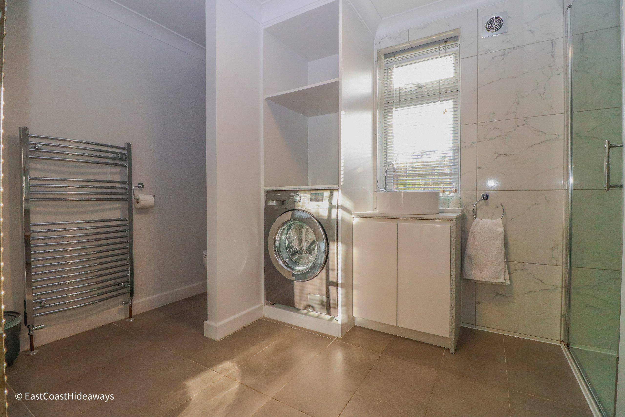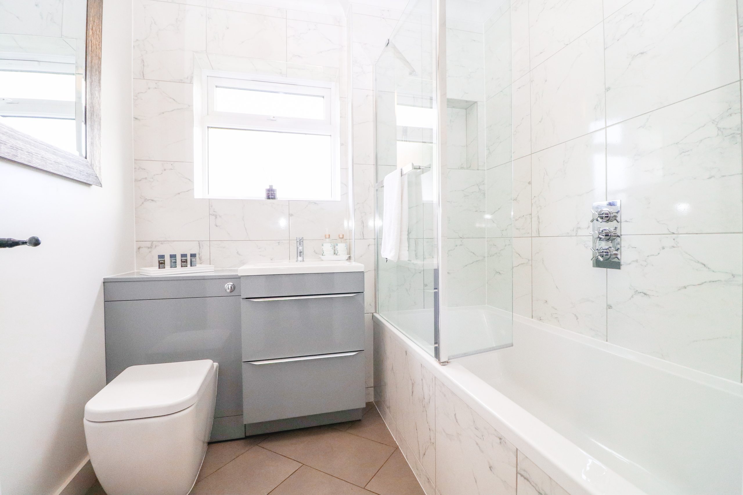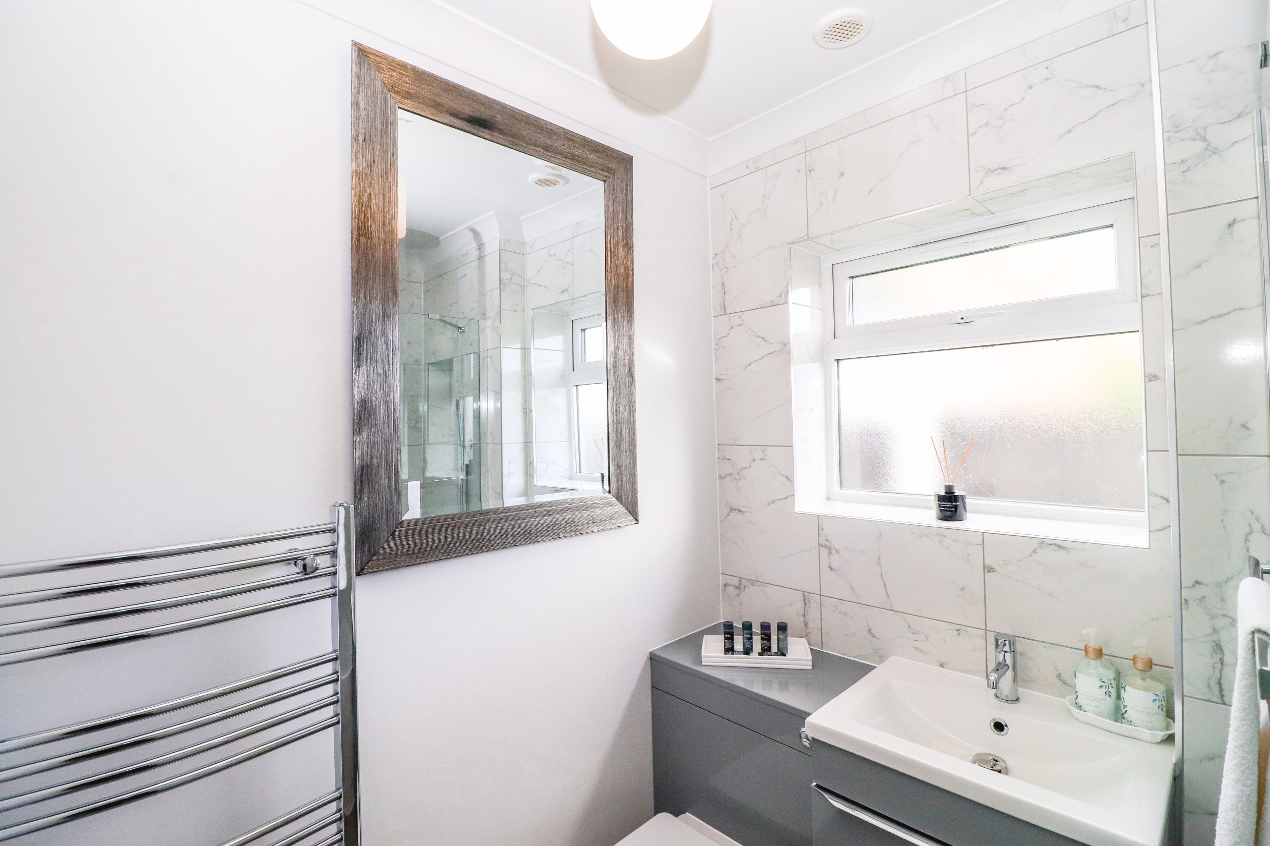 The bathrooms feature a roll-top bath, powerful showers and plenty of hot water.